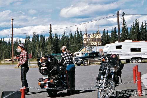 Преодолев по Канаде еще две тысячи миль, к вечеру шестого дня пути приехали в страну, которую в 1867 году Россия продала Соединенным Штатам Америки за 7,2 млн. долларов - по два цента за акр!.. Мы на Аляске! Названия бередят память и возвращают в детство: Юкон, Клондайк... Вокруг настоящая тайга и купоросно-синие озера. Однако все в дымке - очевидно, где-то горит лес. Климат и природа южной Аляски напоминают одновременно Карелию и Камчатку - нетронутая тайга, реки и горы со снежными вершинами. На берегах многочисленных озер небольшие домики, а рядом на воде один, а то и два легких гидросамолета. Они здесь вместо автомобилей - в гости слетать, груз перевезти.