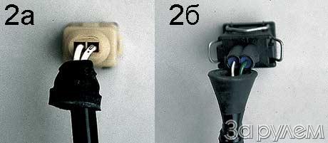 Если сравнить жгут с рекой, то фото 1 отражает ее дельту - именно здесь многочисленные провода "вливаются" в недра блока управления. Очевидно, арзамасский разъем (на фото слева) понимает эту аналогию буквально - через такое "уплотнение" вода не может не попасть внутрь. Аналогичному американо-самарскому изделию "разжижение мозгов" не грозит - тут тебе и герметик, и изоляция, и уплотнитель... Та же картина на фото 2 - уплотнение подкапотных соединителей сделано, мягко говоря, по-разному.