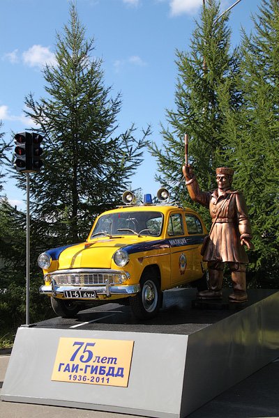 Патрульный ГАЗ-21, верой и правдой прослуживший долгие годы, водружен на возвышение у здания Омского регионального ГИБДД. На машине восстановлена окраска, принятая в милиции советского времени: кузов желтый с синими полосами. Машины дорожного надзора тогда оснащали сиреной, громкоговорителем и радиостанцией, на крыше пара фонарей-мигалок (еще раньше фонарь был один), спереди дополнительные фары. В патрульные автомобили устанавливали более мощные, чем в серийные «Волги», двигатели, обеспечивавшие лучшую динамику.