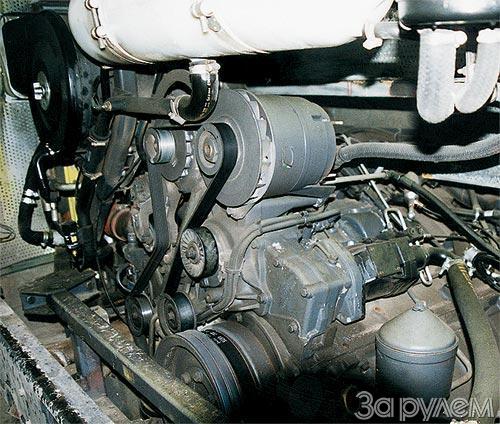 В готовый остов устанавливают силовой агрегат. Размещается он в задней части салона и спрятан в шкафу. Ведь под пол ляжет только плоский (горизонтальный) мотор, а их раз, два и обчелся. На МАЗ же можно поставить какой угодно. От дешевого ММЗ (Минский моторный) до "Даймлер-Крайслера" и МАНа. А вся адаптация - приварить к кузову соответствующие кронштейны. Коробки передач тоже на выбор. Хочешь - ярославскую механическую, хочешь - "Фойт"-автомат. Правда, последняя на 10 тысяч долларов дороже.