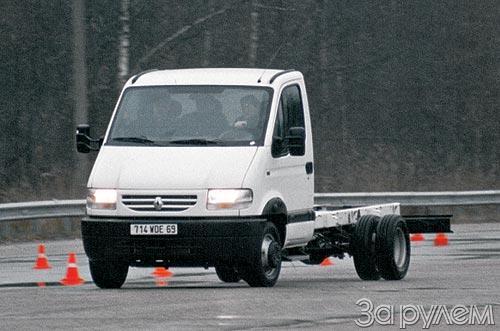 Представительство фирмы "Рено V.I." устроило российскую презентацию легкого грузовика "Маскот". К сожалению, в полной мере оценить его рабочие качества не удалось. Тем не менее, самое приятное впечатление оставили маневренность и динамика (в первую очередь, замедление) грузовика, сравнимые скорее с легковыми машинами. Радиус поворота машины с колесной базой 3130 мм - всего 5,6 м (у "Волги" заметно больше). Тормоза - все дисковые, по заказу - с АБС. Любопытно, что рядом с задними дисками пристроены барабаны стояночного тормоза.