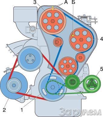 Ремни. Внешний, поликлиновой, который приводит вакуумный насос, позаимствован у восьмиклапанных "десяток" (или наоборот). Генераторный - "жигулевский". Распредвал вращает зубчатый ремень 2112. Срок службы отечественного ремня определен в 40 тыс. км, импортного - 60 тыс. км.