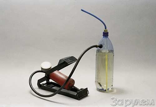 Саша достает из портфельчика что-то вроде бачка омывателя с кучей шлангов и проводов. Все ясно - зачем ковыряться в бензобаке, когда можно... принести запасной! Открывает капот, разъединяет топливную магистраль - мастера давлением не испугаешь, подключает свой "микробензобак" - вот, в общем-то, и все...