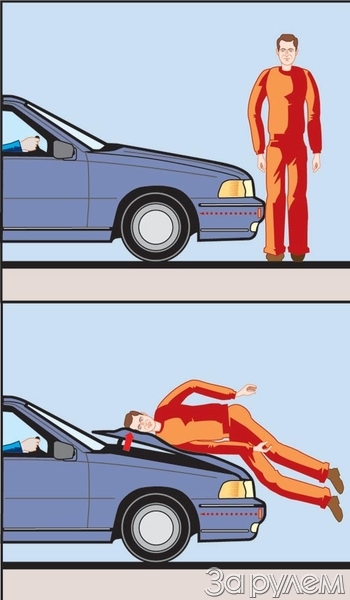 Статистика наездов подсказала, что в момент удара скорость в 80% случаев не превышает 50 км/ч - уже легче. Далее, в такой же доле случаев пешеходы попадали под легковой автомобиль, и это тоже большая удача (для конструкторов, разумеется): "смягчить" вертикальную "морду" грузовика было бы гораздо сложнее. Наконец, многочисленные эксперименты с манекенами, имитирующими как взрослых разной комплекции, так и детей, показали перед объективами скоростных кинокамер, какие именно участки автомобиля вступают в контакт с головой и другими частями тела пешехода. Там и необходимо принимать первоочередные меры по смягчению удара.