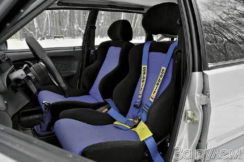Вам не нравятся штатные передние сиденья? И у нас они восторга не вызывают - неудобно. Модернизацию салона именно с них и начнем. Зарубежные кресла, конечно, хороши, но кусаются. Стильная лодочка от "Спарко" стоит 450-500 долларов, "Рекаро" еще дороже. А вот отечественные UNP вроде бы по карману, нормам безопасности соответствуют да и смотрятся неплохо. Решено - берем. Причем сразу два по цене одного фирменного. Ограничиться только водительским не смогли - слишком велико было искушение. А приглянулась нам модель "Спорт-Комфорт" с синими вставками. Они прекрасно сочетаются с недавно установленными наружными деталями.