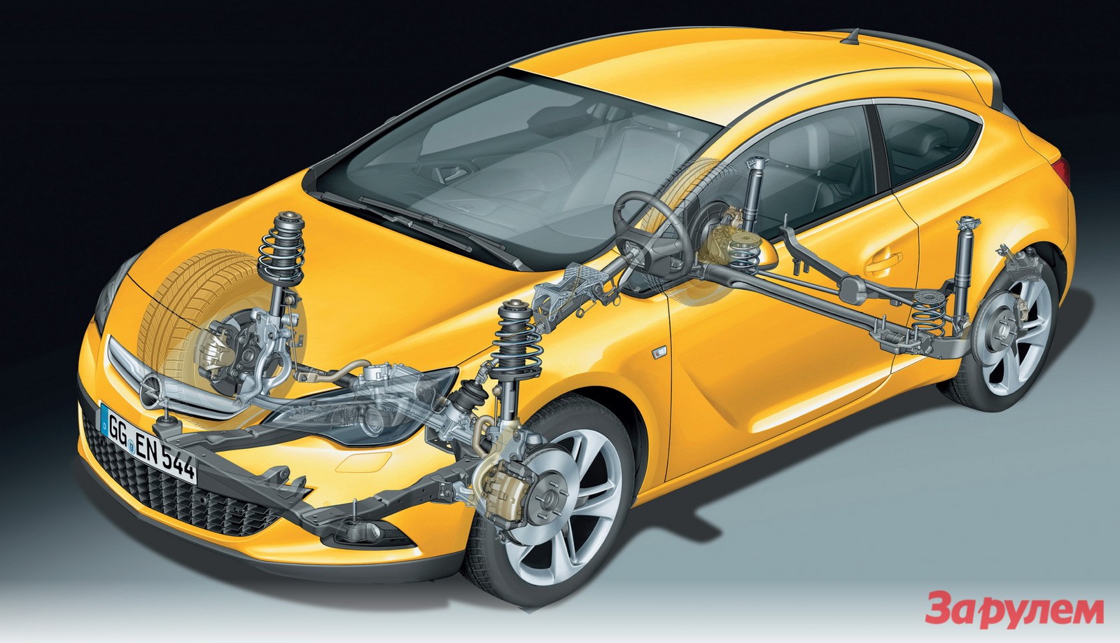 Если вкратце, суть усовершенствования такова: колеса к стойкам МакФерсон крепятся через поворотные кулаки. Конструктивно исполнение такой подвески может несколько различаться, но принцип разделения классической стойки на качающуюся и поворотную части остается неизменным. Названия для своих версий «кулачного» МакФерсона производители изобретают каждый на свой лад. К примеру, французы из Renault, пожалуй, первыми применившие такую схему, называют ее псевдо-МакФерсон. Фордовцы для подвески «злого» Focus RS придумали более аутентичное: RevoKnuckle – то есть поворотный (а может, революционный – понимай, как хочешь) шарнир. В концерне GM назвали подобную подвеску HiPerStrut – Hi Perfomance Strut. Поначалу она появилась на 325-сильном Opel Insignia OPC, а затем перекочевала и на другие модели концерна, в частности, на Opel Astra GTC, Buick LaCrosse CXS и Buick Regal GS.