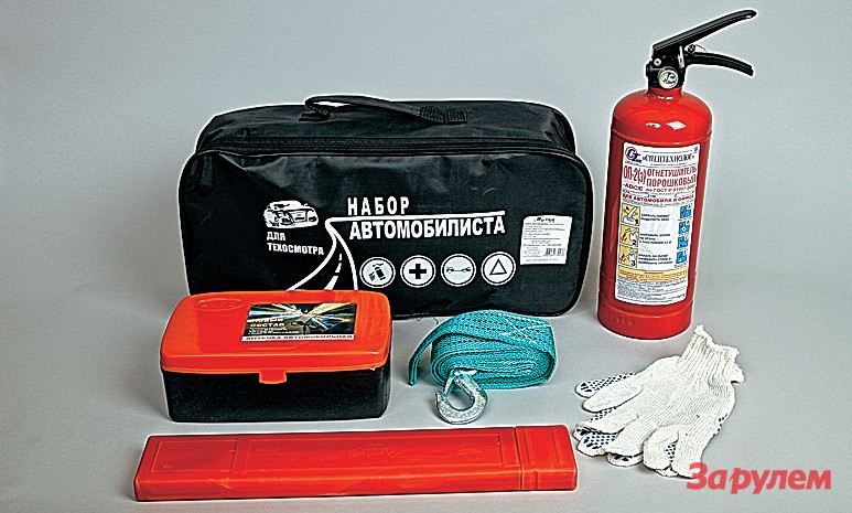 Трос возить совсем не обязательно, но как раз его-то водитель положит скорее, чем треугольник! Длина правильного троса должна обеспечивать дистанцию между автомобилями от 4 до 6 м, к тросу крепят красно-белые флажки со световозвращающей поверхностью. Наконец, обязательная нынче аптечка выродилась в набор бинтов и пластырей плюс кровоостанавливающий жгут и приспособление для искусственного дыхания. Причем количество, длина и ширина каждого перевязочного средства определены приказом Минздравсоцразвития РФ № 697 н.