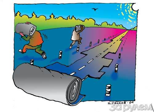 Мы не ставим перед собой цель заклеймить дорожников. Они ведь на самом деле работают, и работают много: за последние годы на карте России появилось немало новых и хороших дорог. Но, согласно новому Налоговому кодексу, средства территориальных дорожных фондов уменьшаются почти вдвое. Значит, и новых дорог мы сможем построить меньше и содержать их хуже, заявляют дорожники. А чтобы компенсировать потери, предлагают выход замечательный: резко увеличить налог с владельцев транспортных средств! К сожалению, такой же точки зрения придерживается и Председатель Правительства РФ Михаил Касьянов. "А то, что получается, - говорил он, - владелец "Жигулей" платит в год какие-то 80 руб. Их не хватит даже на то, чтобы заасфальтировать место, которое занимает на стоянке одно колесо его машины!".
