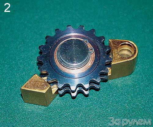 Между тем проблема "обуви" решается довольно просто. На фото 2 представлено натяжное устройство, разработанное и выпускаемое московской фирмой СЕТ. Устройство чем-то напоминает швейную машинку "Зингер": при вращении оно всасывает в себя пары масла, смазывая само себя. Ломаться, засоряться и изнашиваться здесь просто нечему. Замена несчастного башмака происходит демократическим путем: снял одно, поставил другое... И сразу всем становится хорошо: снизилось трение, появилась экономия топлива, исчезли продукты износа, пропали сумасшедшие динамические нагрузки гидронатяжителя.