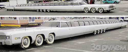 Впрочем, даже мелкосерийным машинам не тягаться со штучными образцами, создатели которых вовсю стремятся удивить мир. Так, американец Джей Орберг построил лимузин "Американская мечта" (American Dream) длиной... 30,5 метра! На борту машины могут одновременно устроить вечеринку до пятидесяти гостей, в распоряжении которых плавательный бассейн и огромная кровать с водяным матрацем. Дабы 10-тонная конструкция на базе "Кадиллака" 1980 года выпуска могла хоть как-то маневрировать, пришлось сделать кузов сочлененным по принципу городского автобуса. В движение 26-колесную "Американскую мечту" приводят два двигателя, а в корме предусмотрено место для... второго водителя, который управляет монстром, если нужно сдать задним ходом.
