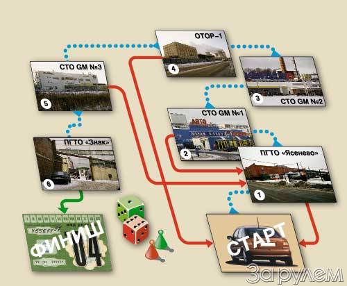 Попытка последняя. ПГТО "Знак" на Ленинградском проспекте (фото 6), по словам местных автомобилистов, недавно оснащен новеньким оборудованием. И - ура, ура! - результаты проверки здесь оказались сходными с теми, что показывал тормозной стенд в фирменном техцентре, причем еще до замены деталей! И тормозные усилия, и вес машины, оказывается, были в норме! Обратись мы с "Опелем" сюда с самого начала, избежали бы затрат на новые диски-колодки-барабаны, не говоря уже о погибших безвозвратно нервных клетках.