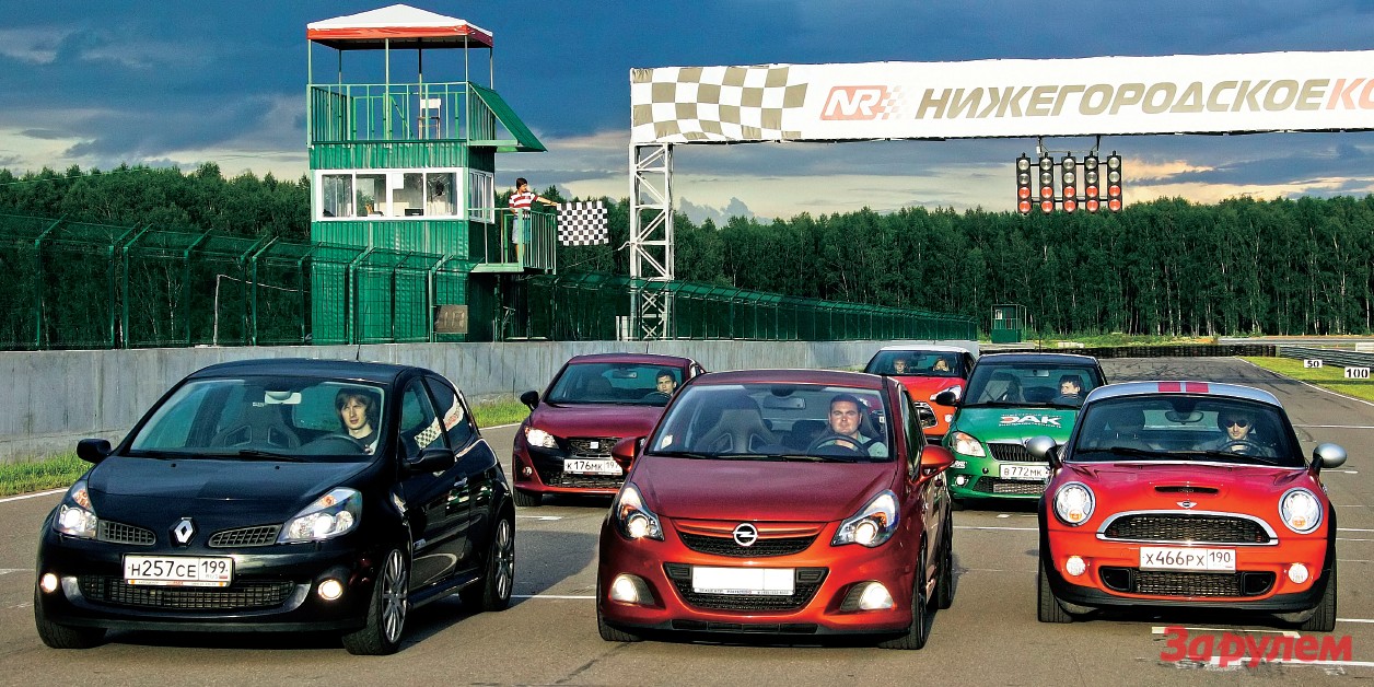Сначала была «Корса». То есть в пресс-парке компании появилась версия «OPC Нюрбургринг Эдишн»: 211 турбосил, еще более жесткая подвеска, четырехпоршневые тормоза «Брембо», межколесный «самоблок»… Кому с такой тягаться? Александр Гармаш, организатор любительской гоночной серии для поклонников хот-хэтчей, подсказал: в соперники годятся такой же мощный «Мини-Джон Купер Уоркс» либо «Рено-Клио RS» (201 л.с., механика). Остальные малыши, по опыту соревнований горячих хэтчбеков, самой мощной «Корсе» заметно сливают.