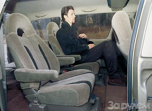 Нашей "Превии" приходится быть то автобусом, то грузовиком, то буксировщиком. С этими обязанностями машина прекрасно справляется. Семь человек в ней располагаются вполне комфортно. А если необходимо, скажем, перевезти два комплекта колес размерностью 14-15 дюймов, они легко уместятся в багажнике за третьим рядом сидений, не стесняя пассажиров. Когда груз крупногабаритный, задний ряд можно поднять к боковинам кузова или, открутив всего четыре болта, вообще избавиться от него. По крайней мере, стандартный письменный стол помещается в салон при сложенных задних креслах и развернутых против хода сиденьях второго ряда.