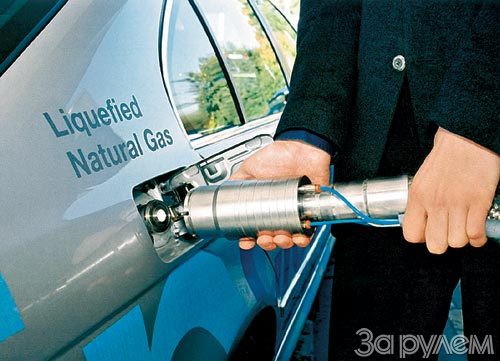 И вот концерны "Арал", БМВ, "E.ON Энеджи", "Линде" решили начать создание сети газонаполнительных станций нового поколения. Смысл новации в том, что природный газ охлаждается до -161°С и при давлении всего 0,6-1 МПа (6-10 атм) переводится в жидкое состояние. Такой метан можно доставлять в специальных цистернах. Далее его нетрудно залить в баки-термосы автомобиля, установленные вместо тяжелых стальных баллонов, которые должны были выдерживать до 20 МПа (200 атм). Несмотря на немалую толщину стенок из специальной теплоотражающей пленки, внутри этих баков остается достаточно места, чтобы вместить запас жидкого метана на 500 км пробега против обычных 200-250 км для сжатого газа. Сегодня успехи теплотехники таковы, что даже летом удается сохранить запас сжиженного газа в течение двух недель. А больше вряд ли нужно для автомобиля, если только он не используется "по праздникам".