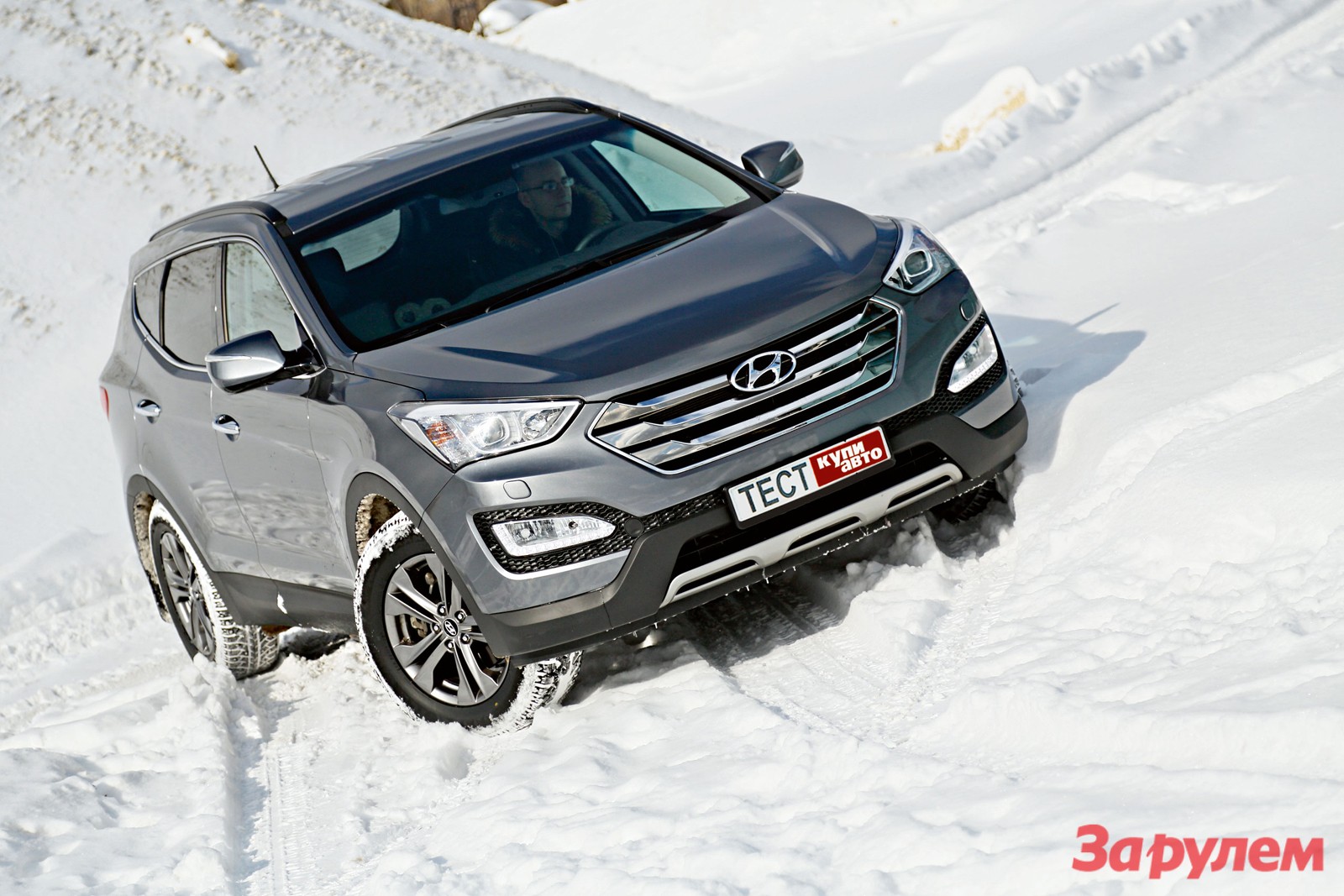 Для езды по-семейному неторопливый 175-сильный бензиновый мотор объемом 2,4 литра подходит замечательно: он не слышен на холостых, но по мере роста оборотов начинает сыто урчать. Независимая подвеска обзавелась новым подрамником, сайлент-блоками и более толстыми рычагами: все это необходимо для того, чтобы лучше изолировать кузов от дорожных невзгод. И ведь неплохо получилось! По плавности хода и шуму в салоне «Санта» лишь самую малость недотягивает до «Ленд-Круизера». Правда, в полной мере относится это к 7-местной машине, оснащенной амортизаторами регулируемой жесткости в задней подвеске. Впрочем, версии попроще дорожные мелочи проходят лишь немногим жестче.