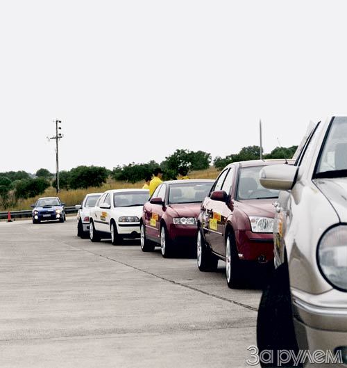 Следующее испытание - круговое движение по обильно политой асфальтовой площадке. Здесь и скорость пониже, да и автомобили попроще: " Опель Вектра" и "Мерседес" С-класса. Зато рулем крутить и газовать можно от души - главное, не вылететь с дорожного полотна. И здесь "Пи Зеро Неро" оставили очень хорошее впечатление. На мокром покрытии все проскальзывания начинаются очень плавно, без резких неожиданных срывов. В результате скольжения легко контролируются, а на заднеприводном "Мерседесе" можно даже поэкспериментировать с заносом задней оси.