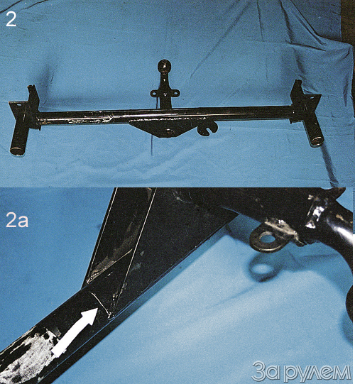 На фото 2а - трещина на поперечной трубе УТС 08.000. Полная масса буксируемого прицепа (предполагаем - "от жадности", дабы привлечь покупателя!) явно завышена.