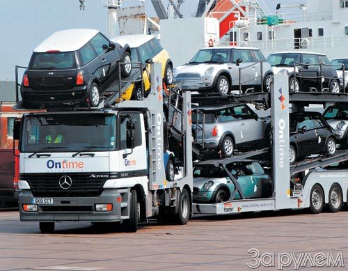 Новый "Мини", похоже, может стать таким же культовым автомобилем, как его предшественник. Во всяком случае, продажи резко идут в гору и фирма не успевает доставлять машины дилерам. В Англии на помощь пришли автовозы на базе 40-тонных "актросов 1840LS", на которых удалось разместить по 12 "мини". Говорят, еще ни один не свалился, что, судя по снимку, даже удивительно.