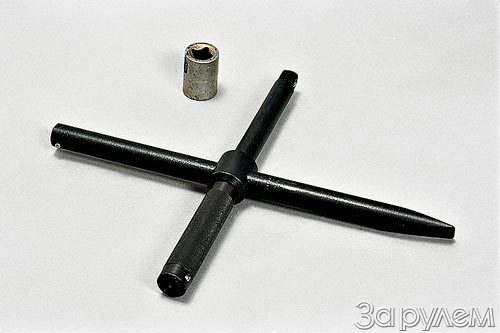 Заменой проколотого колеса приходится заниматься всем категориям водителей - свернул с трассы в сторону и понимаешь, что нет здесь ни сервиса, ни сотовой связи... Надо лезть в багажник и доставать инструмент - либо "крестовину", либо торцевой ключ. Новинка как бы объединяет их - получился универсальный ключ с присоединительным квадратом и вращающейся рукояткой. Вороток в ключе передвижной: это позволяет легко увеличивать плечо и побеждать непослушные соединения. Вращающаяся рукоятка не допускает перекоса ключа, свойственного его Г-образным коллегам, - при этом откручивание ослабленной гайки превращается в удовольствие: левой рукой держишь рукоятку, а правой запускаешь вороток в эдакое свободное вращение...