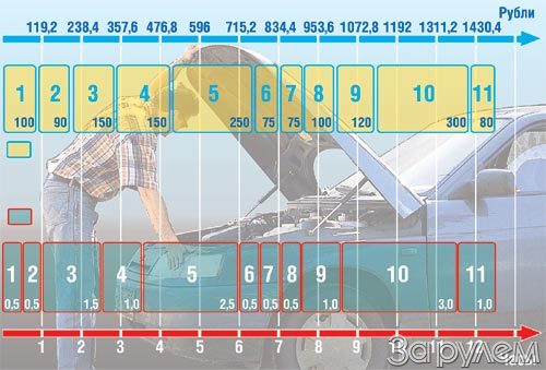 Наш электронный помощник рассчитал стоимость некоторых работ. Непростые и трудоемкие операции оставим за рамками этого обзора, реанимация сложных агрегатов и систем (например, двигателя, коробки передач, электроники) - удел специалистов: если им не доверять, экономия может обернуться дополнительными расходами.