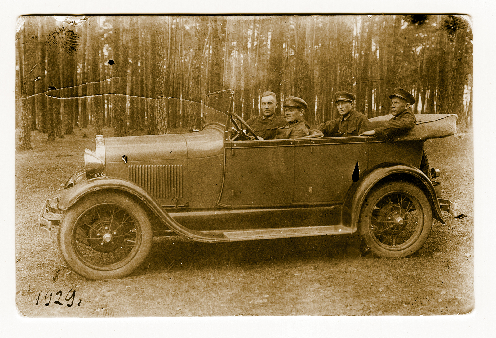 На фотографии 1929 года мы видим американский Ford Model A – один из самых распространенных автомобилей не только в Красной армии, но и вообще в Советском Союзе конца 20-х и начала 30-х годов. С 1932-го такой «Форд» стали выпускать на Горьковском автомобильном заводе под названием ГАЗ-А. С обратной стороны фото подписано: Майская долина, г. Серпухов.