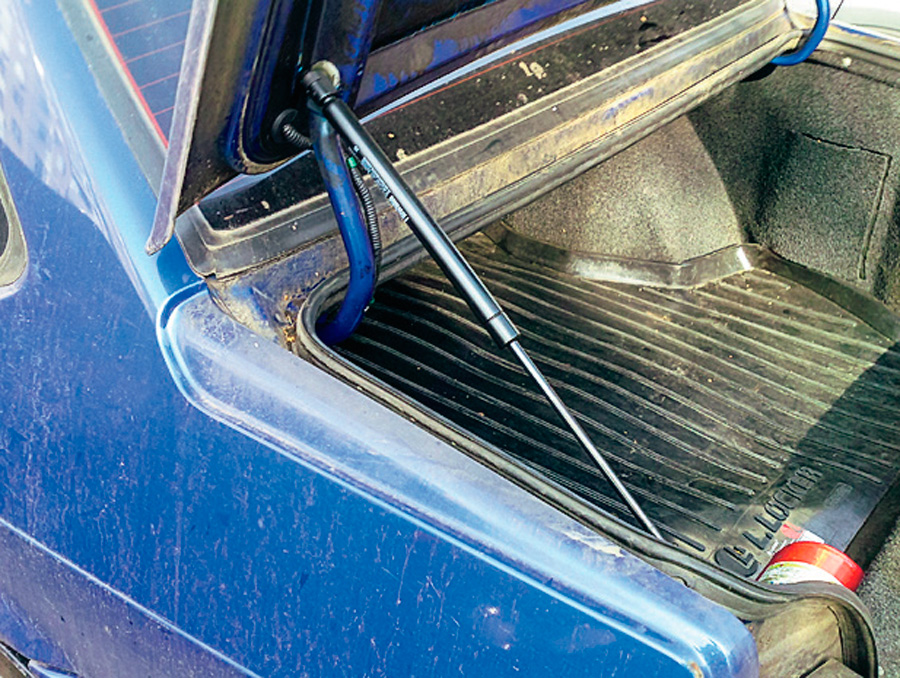 Для более плавной работы расположил его штоком вниз. Подробности операции несложны. Вывинтив нижний болт крепления крышки к направляющему рычагу, вкрутил взамен крепление упора – даже резьба там оказалась идентичной. Затем, подняв крышку в верхнее положение, опустил ее миллиметров на пять и отметил место для ответного кронштейна упора. Отверстие высверлил в отбортовке крыла. Перед окончательной сборкой покрыл металл антикором. Теперь заглядываю в багажник без боязни.