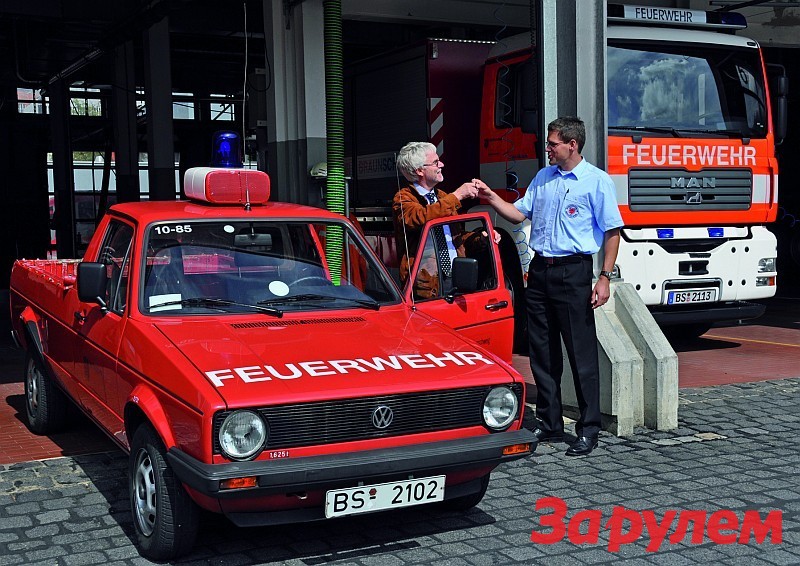 Перед тем как покинуть территорию пожарной охраны города Брауншвейг и отправиться в путь в Автомобильный музей в Вольфсбург, Caddy в последний раз остановился в воротах огромного гаража. Здесь Торге Мальхау, руководитель технического отдела брауншвейгской пожарной охраны, торжественно передал ключи от Caddy Дирку-Михаэлю Конрадту, главе фонда "Автомобильный музей Volkswagen".