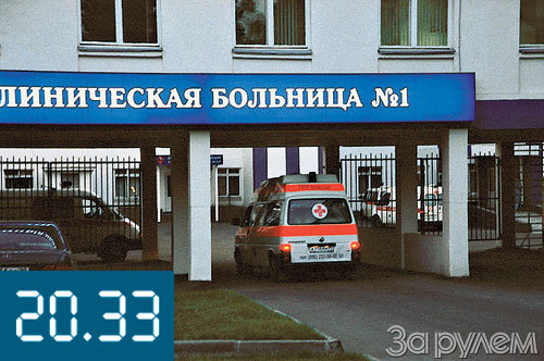 20.09. За воротами прошуршали шины, хлопнули дверцы, и в боксе "За рулем" впервые прозвучало: "Скорую вызывали?". Из профессионального интереса отмечаю: бригада прибыла на "Фольксвагене-Транспортер".