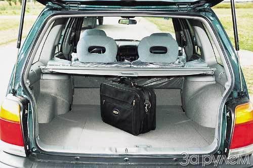 Внутренний объем большого высокого кузова несколько разочаровал - троим на заднем сиденье явно тесновато, а багажник и вовсе невелик: ведь под его полом лежит здоровенная полноразмерная "запаска". Задний диван, естественно, складывается, и автомобиль без проблем превращается в грузопассажирский.