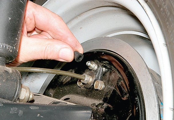 | Проверка состояния колодок, чехлов и наличия смазки направляющих пальцев тормозных механизмов передних колес |
