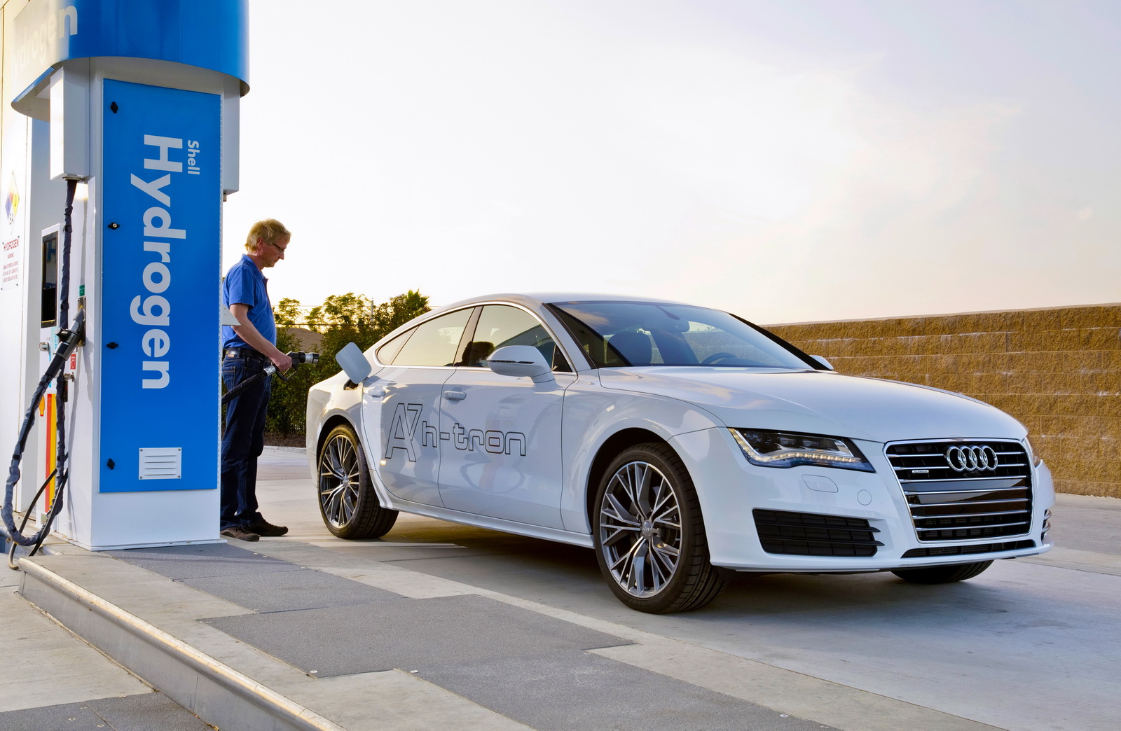 В словаре Audi появилось новое обозначение – h‑tron. Так назвали силовую установку на топливных элементах, работающую на водороде. Принцип не нов: молекулы водорода расщепляются на электроны, которые отдаются в электрическую цепь, и протоны, вступающие во взаимодействие с кислородом. В результате химической реакции образуется лишь водяной пар – абсолютно чистый выхлоп. Первым носителем новой установки стал лифтбек А7 Sportback. Его представили еще год назад, но для близкого знакомства выкатили впервые.
