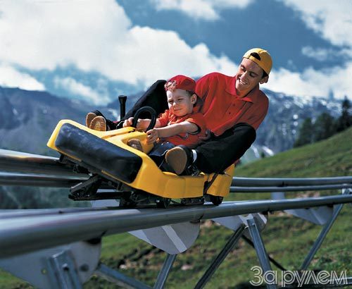 В Швейцарских Альпах можно прокатиться на головокружительной высоте по трассе длиной 3100 м в столь ненадежном и уязвимом экипаже. Но такой он только на вид. Поясной ремень и конструкция роликов, исключающая сход с рельсов, гарантируют вам дозу адреналина без особого риска.