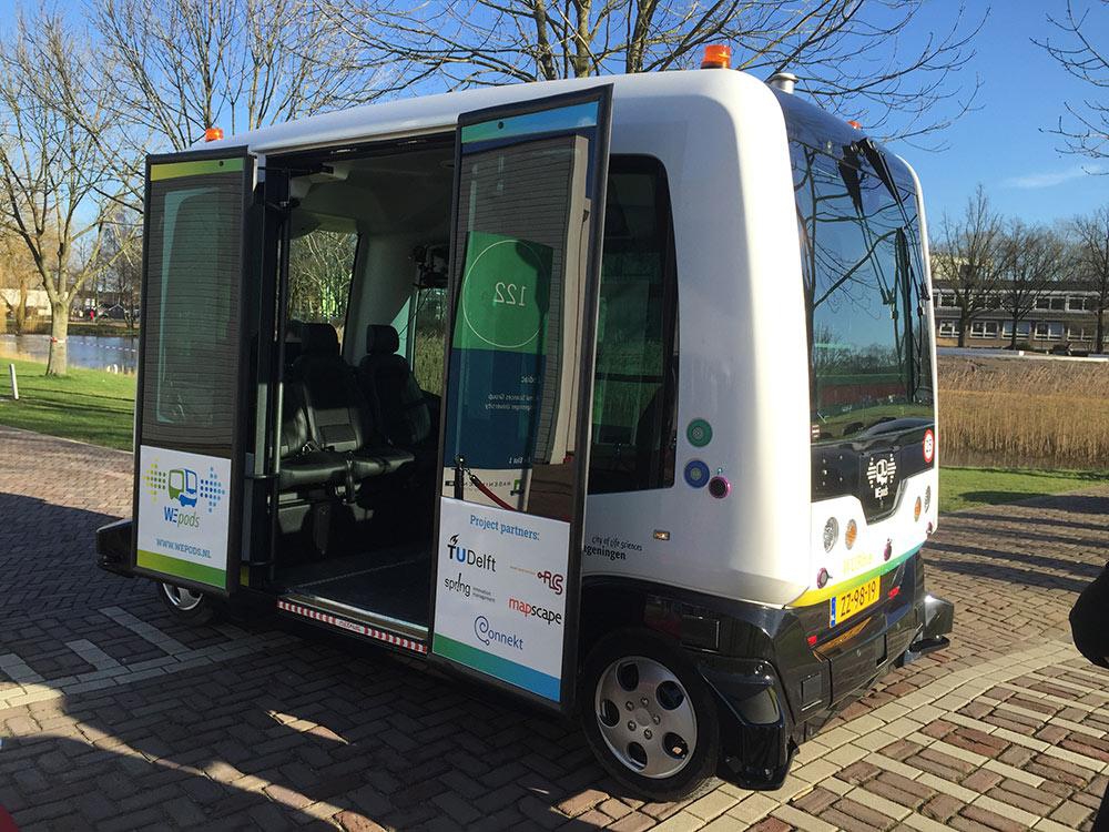 В настоящее время два таких «Вепода» катают студентов кампуса между городками Вагенин и Эде со скоростью до 25 км/ч (после испытаний ее увеличат до 40 км/ч). А со дня на день включат режим такси, и тогда пассажиры смогут сами назначать маршрут с помощью смартфона.