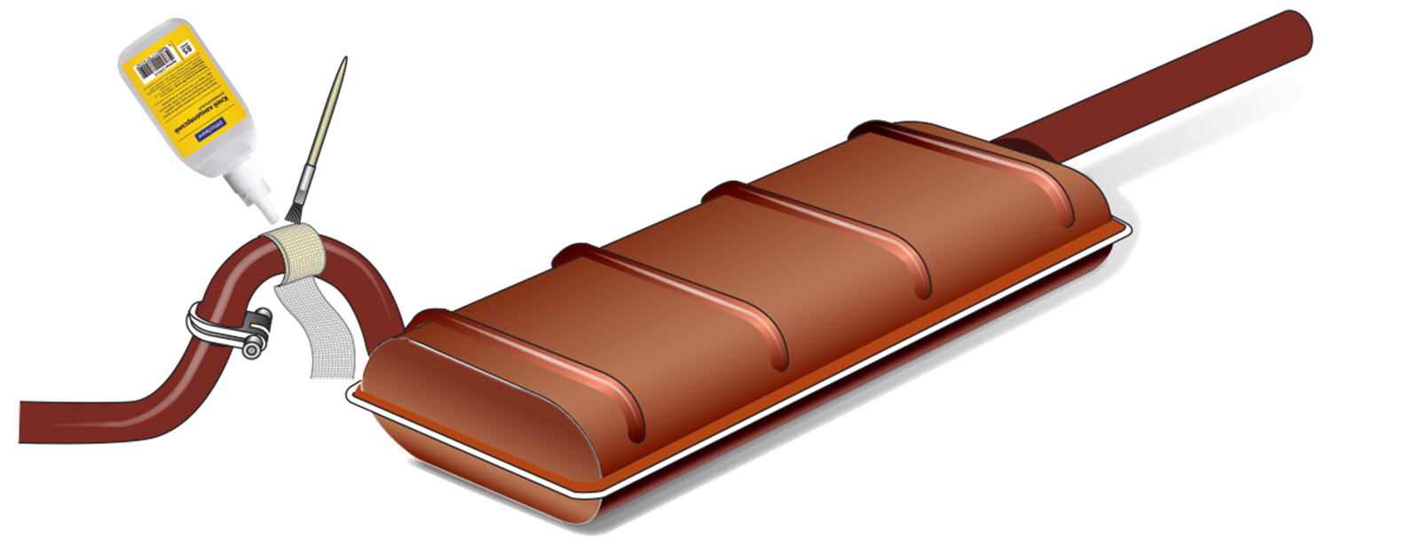 Даже заядлый «народный умелец» не может предвидеть всех неприятностей, которые порой поджидают нас в дальней дороге. У меня, например, прогорела выпускная труба рядом с глушителем. Да, машина не новая, но не возить же с собой запасную систему выпуска! Ехать дальше с ракетным ревом – ни себя, ни других не уважать. Встал на обочине. Узнал у прохожих, где находится магазин канцтоваров, – и купил там канцелярский силикатный клей. Он, как известно, негорючий. Достал из аптечки медицинский бинт. Смазывая место прогара клеем и пропитывая им бинт, намотал примерно четыре слоя. Тронулся в путь, не дожидаясь высыхания клея, ведь нагретая труба ускоряет сушку. Слой такого «гипса» очень прочен, удалить его можно лишь молотком. Позже узнал от бывалых, что кроме силикатного клея отлично подходит и природная глина.