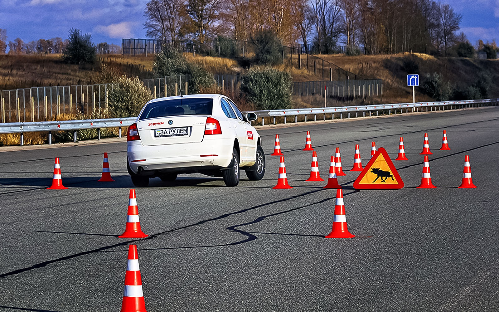 Сложные для восприятия законы физики до ученика лучше всего доносит упражнение «переставка». Оно повторяет известный «лосиный тест», но предусматривает интенсивное торможение перед объездом препятствия. Инструктор расставляет конусы таким образом, что вписаться в искусственные рамки очень сложно. Действовать нужно точно. Если не отпустить педаль тормоза перед поворотом руля, даже при наличии электронных помощников автомобиль пойдет по более широкой дуге и снесет пару пластиковых ограничителей.