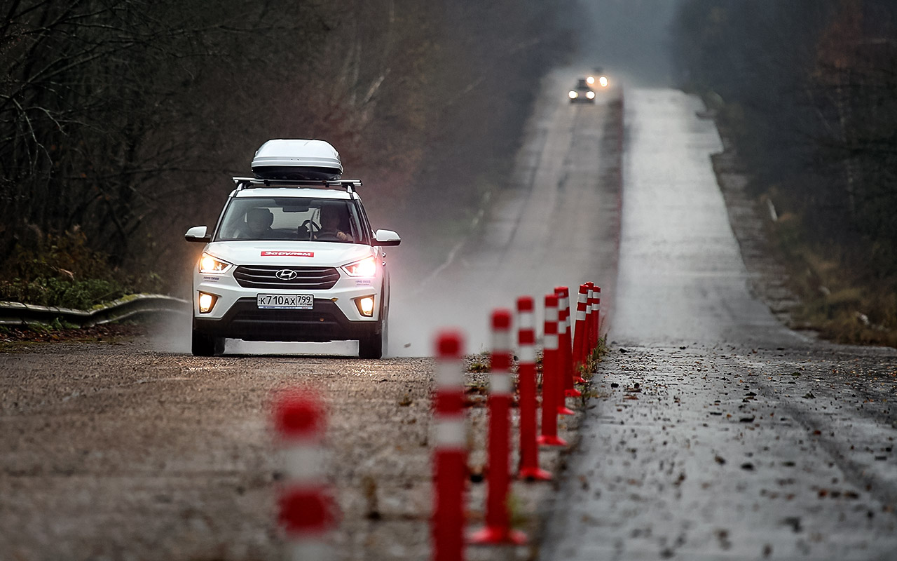 Наша основная цель – дать машинам максимальную нагрузку на булыжнике, горной дороге, грунте. На грунтовой дороге мы можем оценить шумы, стойкость лакокрасочного покрытия, загрязняемость в зонах номерных знаков, фар, задних фонарей, заднего стекла (что особенно актуально для универсалов) и боковых передних стекол в районе зеркал. И, естественно, самих зеркал, которые частенько закидывает грязью. Если позволят погодные условия, мы включим в программу горную дорогу, на которой хорошо нагружаются шины. Условно говоря, один километр на «горной» равен почти трем в обычных условиях.