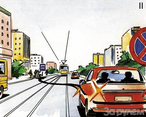 3 - мотоцикл одновременно с легковым автомобилем, трамвай,