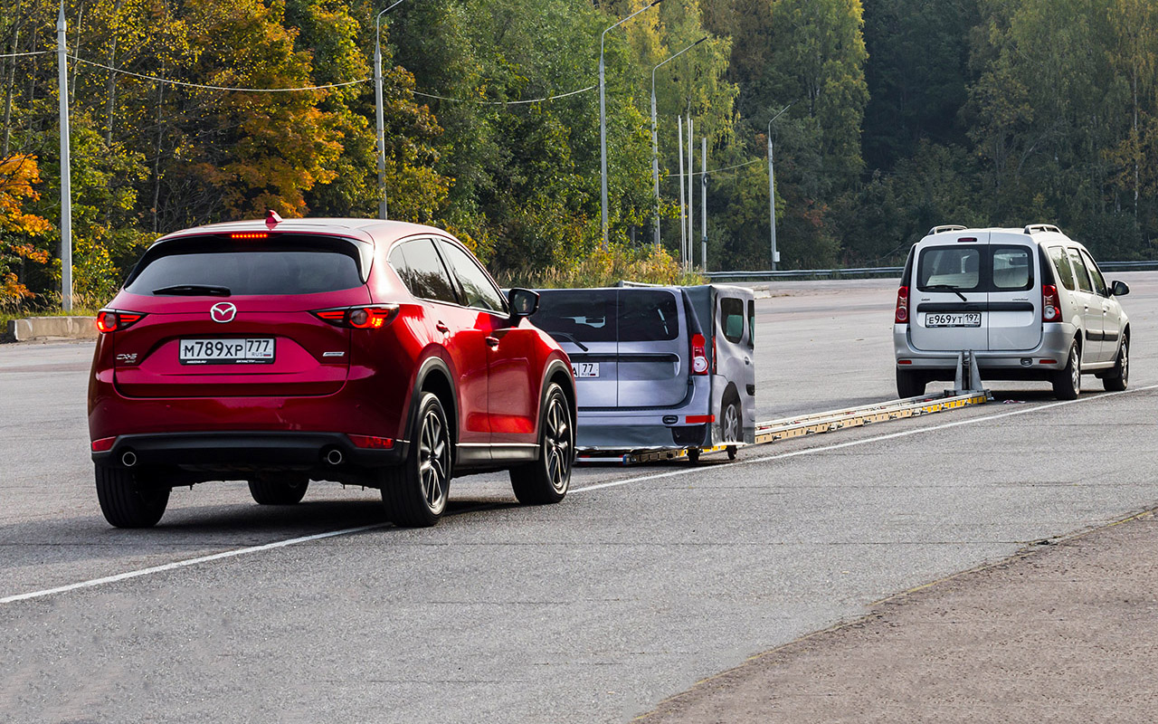 На спецдороги полигона выезжают четыре популярных на российском рынке кроссовера: Mazda CX-5, Volkswagen Tiguan, Skoda Kodiaq, Subaru XV. Все участники находятся в одинаковых условиях и выполняют одни и те же упражнения по разработанной экспертами «За рулем» специально для этих тестов методике. Каждому кроссоверу предстоит пройти полный цикл испытаний: остановка перед неподвижным объектом, замедление при торможении идущего впереди автомобиля и другие. Чтобы ни испытатели, ни машины не пострадали, тормозить автомобили будут перед мягкотелой установкой. При контакте она смягчит удар и тем самым позволит избежать неприятных последствий.