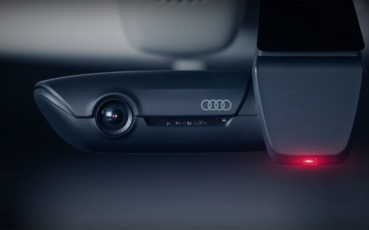 4. У камер Audi Universal Traffic Recorder отличная разрешающая способность: передняя снимает происходящее с углом обзора 137° в формате Full HD 1920×1080, а задняя — в формате HD 1280×720. Чувствительность матрицы позволяет вести съемку ночью.