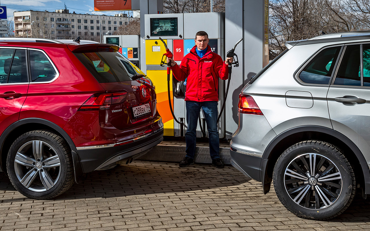 Дизели априори экономичнее бензиновых моторов, вопрос – насколько в нашем конкретном случае? Мы прогнали Тигуаны по тарированным маршрутам в несколько сот километров каждый. Имитировали городской, загородный и смешанный циклы. Мы не ставили задачу добиться минимального расхода, а пытались вычислить реальный аппетит в абсолютно равных условиях. Постарались предусмотреть всё, включая человеческий фактор: водители менялись машинами на середине каждого отрезка. Расход оценивали не по данным трип-компьютеров, которые часто лукавят, а методом долива: запаслись канистрами, мерными стаканчиками и терпением.