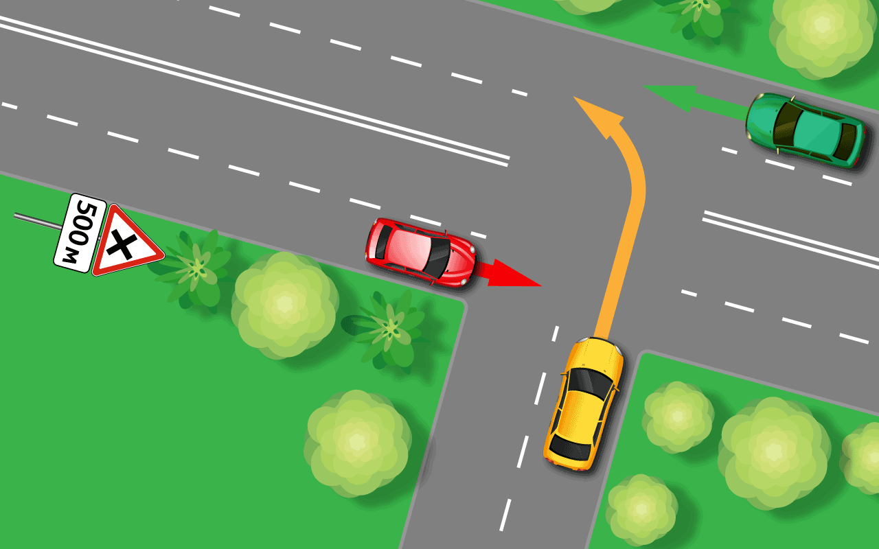 Итак, перед вами загородная дорога. К перекрестку одновременно подъезжают три автомобиля. В какой последовательности они проедут, руководствуясь ПДД? Отмечайте свой вариант, а правильный ответ — на следующей странице.