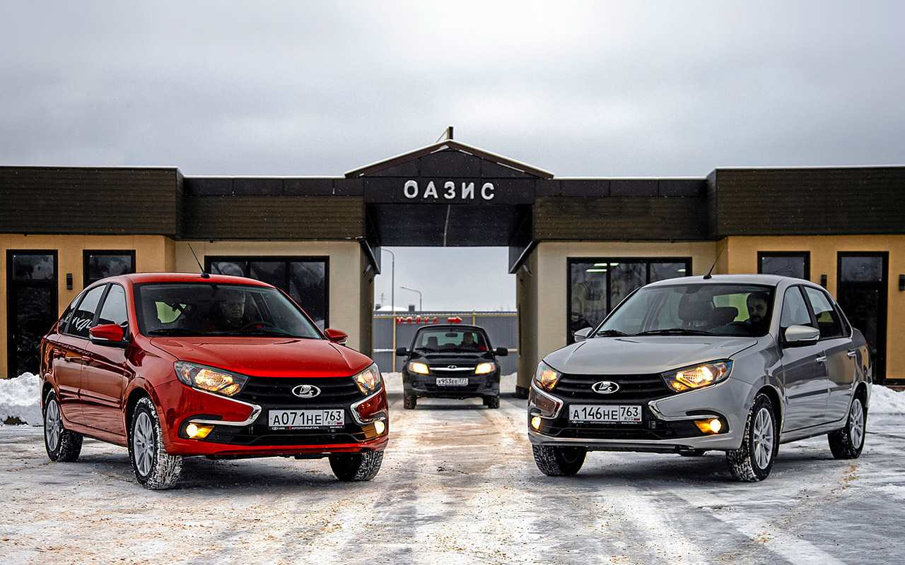 Гранту выпускают с 2011 года, редакционная машина сошла с конвейера в 2012‑м. Двигатель у нее самый простенький – восьмиклапанник с облегченной шатунно-поршневой группой. Из наворотов – только кондиционер и передние электростеклоподъемники. Отличный вариант для проверки масштабов прогресса за семь лет жизни. Против редакционной труженицы мы выставили две новенькие Гранты – седан с механической коробкой и лифтбек с автоматом.