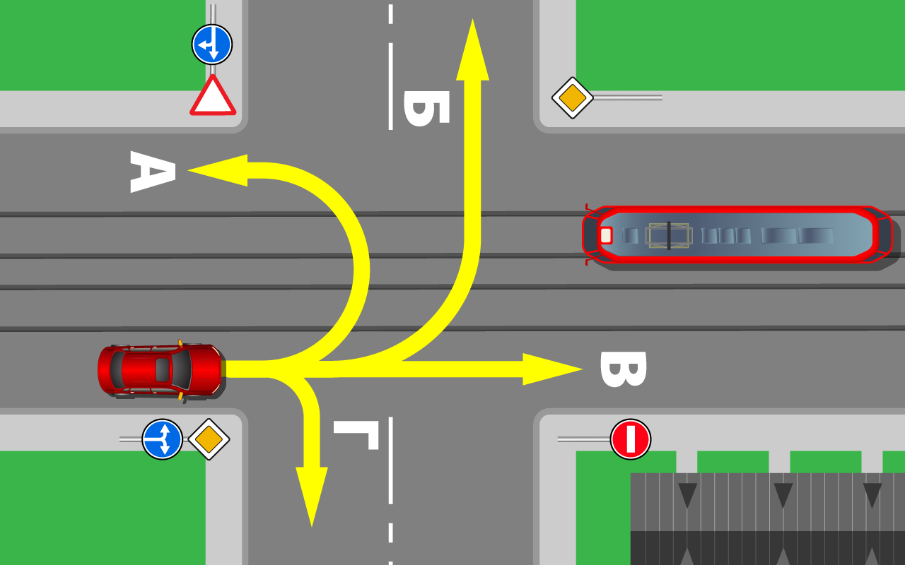 По какой из указанных траекторий вы можете продолжить движение, не нарушив требования ПДД?