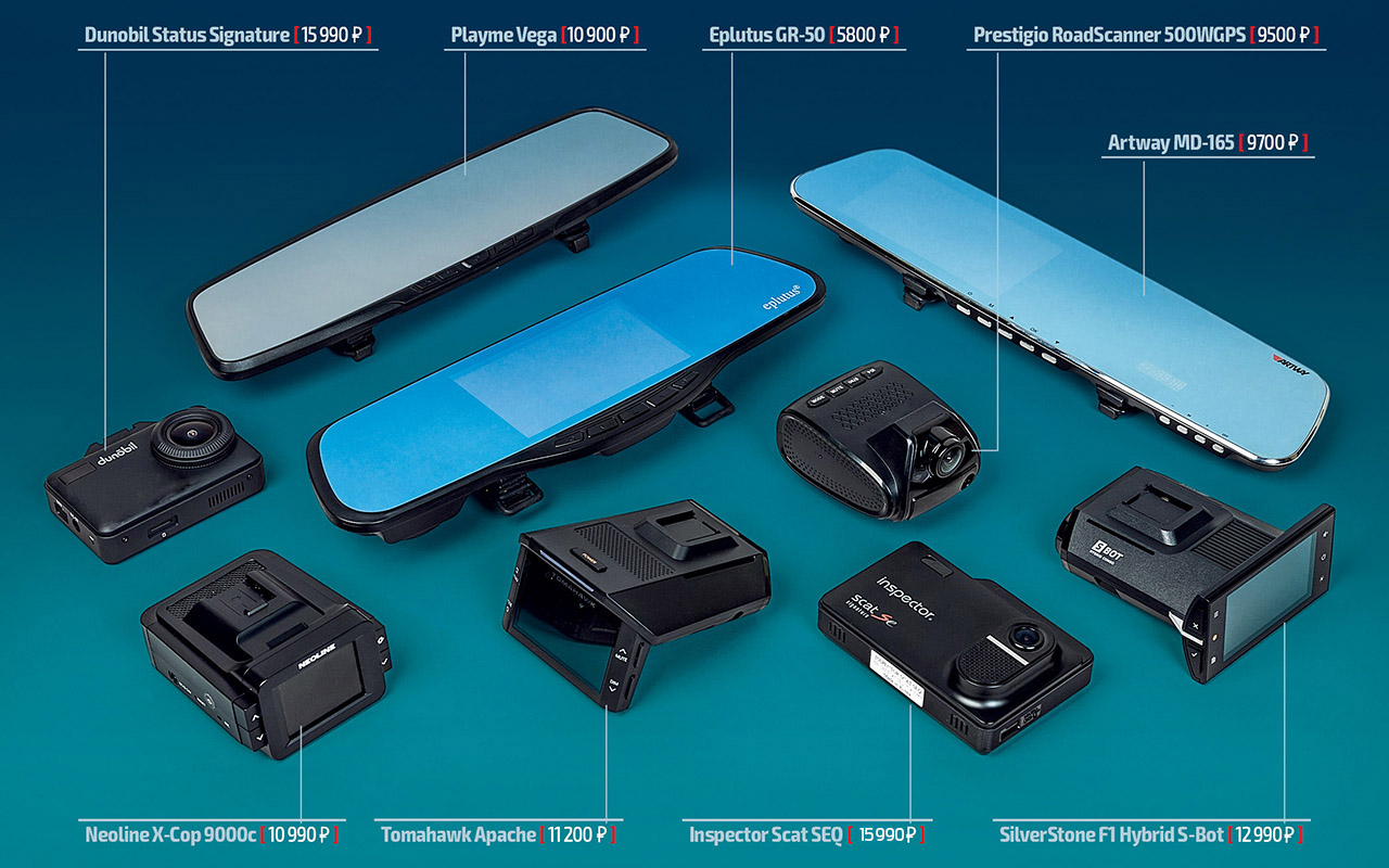 | Artway MD-165 Цена 9700 рублей Скромные способности радар-детектора и камеры. База стационарных радаров ниже всякой критики. Отношение к потребителю складывается из мелочей: названия в меню начинаются то с прописных, то со строчных букв, в некоторых пунктах клавиши «вверх» и «вниз» работают наоборот, есть неточности в инструкции. Регистратор и радар-детектор функционально разделены настолько, что время по GPS выставляет только радар-детектор – для «видика» его нужно настраивать отдельно. | Playme Vega Цена 10 900 рублей На общем фоне гаджет оказался середнячком, однако из «зеркал» я рекомендовал бы к покупке именно его. Набранные в тесте радарной части метры те же, что у прибора Eplutus GR-50, а ложных срабатываний гораздо меньше. В отличие от гаджетов Artway и Eplutus, предупреждает о камерах, работающих в спину. По качеству видео ненамного, но всё же обошел Eplutus. Эргономический минус – смена режимов радар-детектора только через меню. !!! Лучшее из зеркал теста | Eplutus GR-50 Цена 5800 рублей За такую цену не все бренды предлагают даже обычный хороший видеорегистратор с базой радаров. А тут – и радар-детектор, и вторая камера. Демпинг в стремлении завоевать рынок? Видео скромного качества и немалое количество ложных срабатываний говорят о том, что на цену клевать не стоит. Насмешил пункт меню, который озаглавлен «Э-собака». Надеюсь, это не обращение к покупателю? |