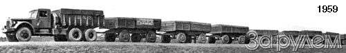 1959. "Николай Иванович Лапов из Илека в Оренбург провел семидесятиметровый автопоезд, состоящий из тягача ЯАЗ-210Д с девятью прицепами, в которых находились 71,7 тонны зерна".