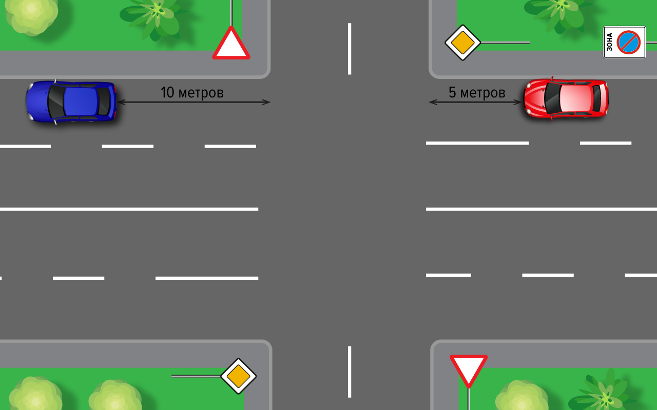 Водители синего и красного автомобилей припарковались на длительное время. Можно ли так оставлять автомобили? Не нарушают ли водители ПДД?