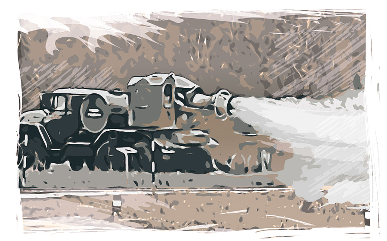 ТМС – это аббревиатура (тепловая машина специальная). А ТМС‑65У – автомобиль специального назначения, способный проводить специальную обработку тяжелой военной техники, зданий и других сооружений, а также дезинфекцию целых районов. Изюминка – применение реактивных двигателей КВ‑1, которые в свое время использовались на самолетах МиГ‑15 и МиГ‑17. Только вместо создания тяги они занимаются распылением обеззараживающих веществ.