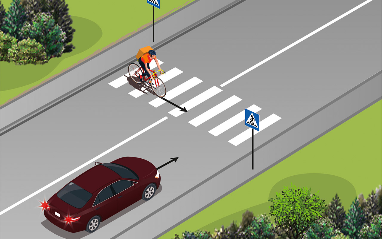 Другой вопрос — что на этот счет сказано в ПДД? Итак, должен ли водитель уступить дорогу велосипедисту, который едет по зебре?
