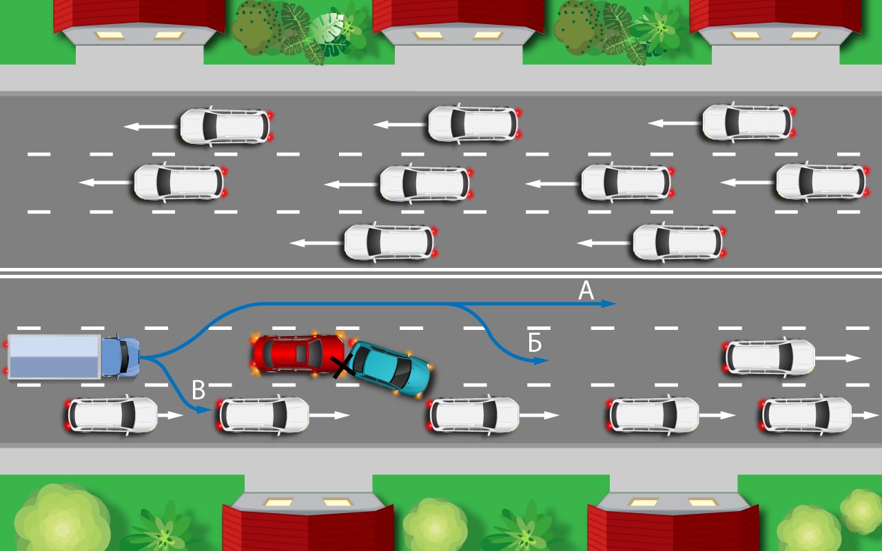 Объехать аварию та еще задачка! Нужно суметь быстро вклиниться в соседний ряд. И сделать это безопасно и строго по правилам.
