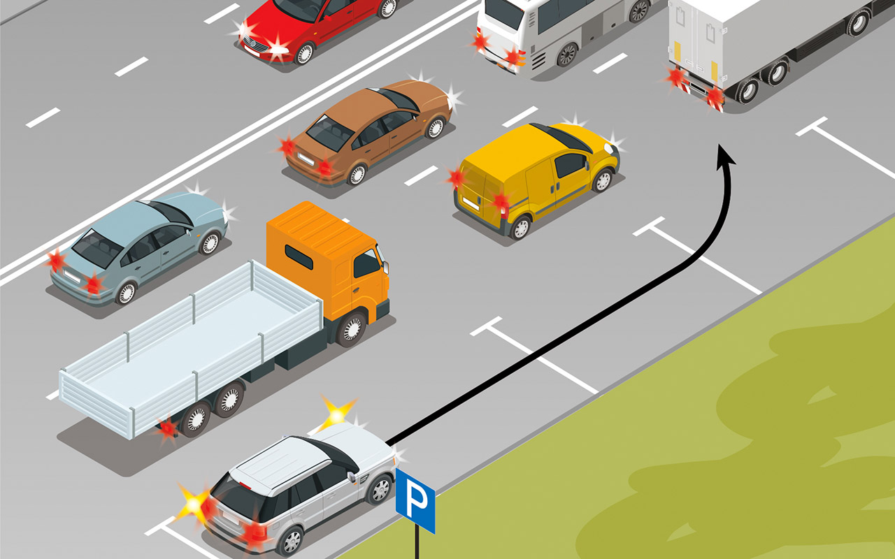 Плотный трафик не дает возможности водителю отъехать от края проезжей части.